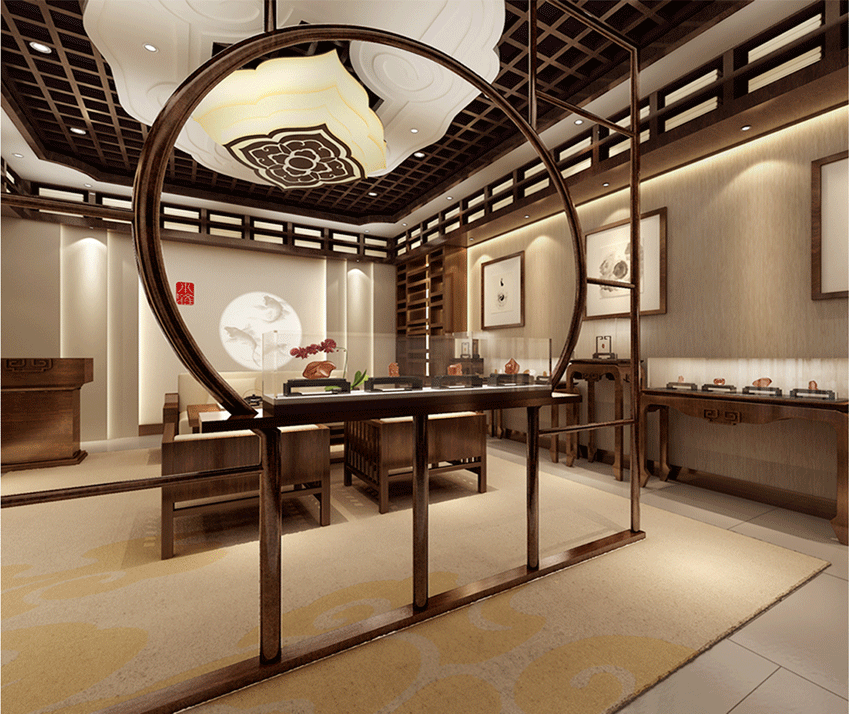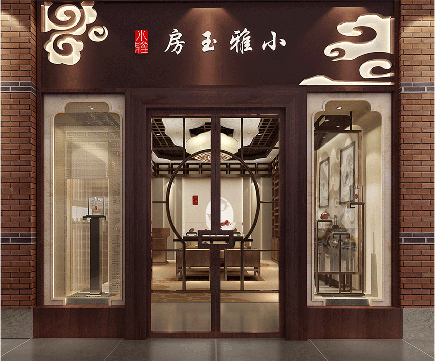 項目服務:小雅玉房專賣店設計,中式風格的運用,優雅的云紋,體現出玉的古色古香,呼應品牌。