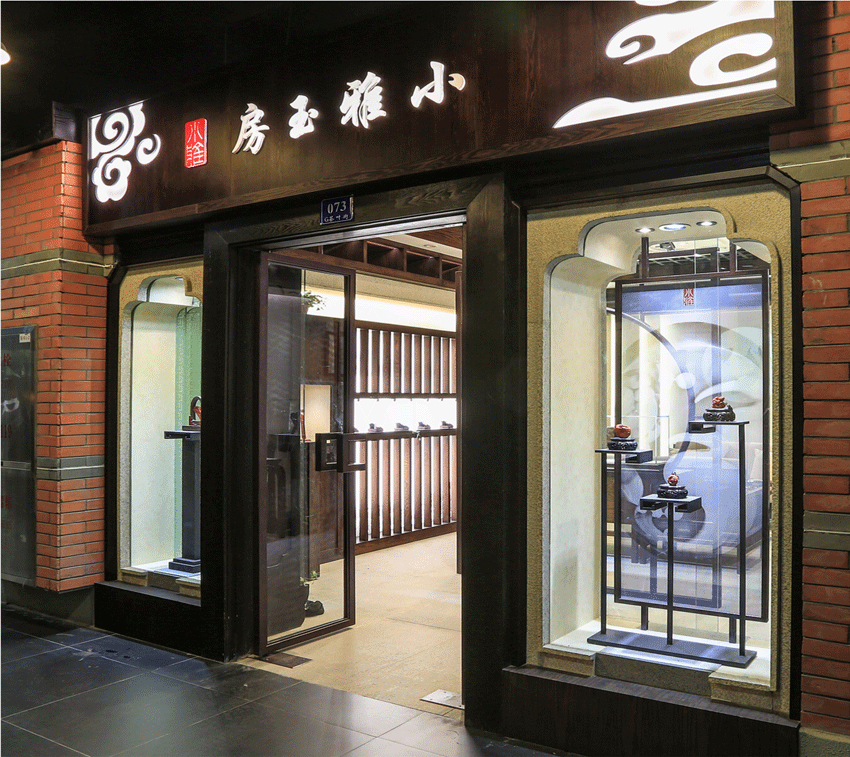 項目服務: 小雅玉房位于上海虹橋古玩城,只對精品南紅進行營銷。中式風格的運用,優雅的云紋,體現出玉的古色古香,呼應品牌。